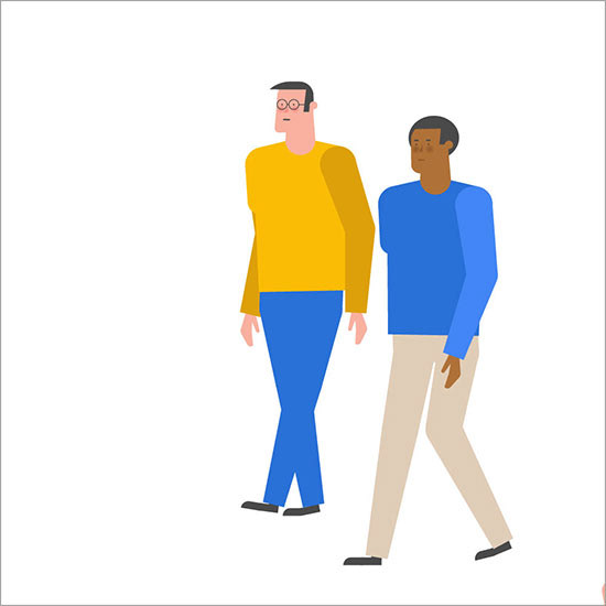 Assets for the six Recalibrate characters were drawn in Adobe Illustrator. Imported into Adobe After Effects, I rigged one character and copied that character comp five times. I then replaced assets in the five copied comps, making each character unique. After animation, I rendered a ten second loop. - Joe Gast